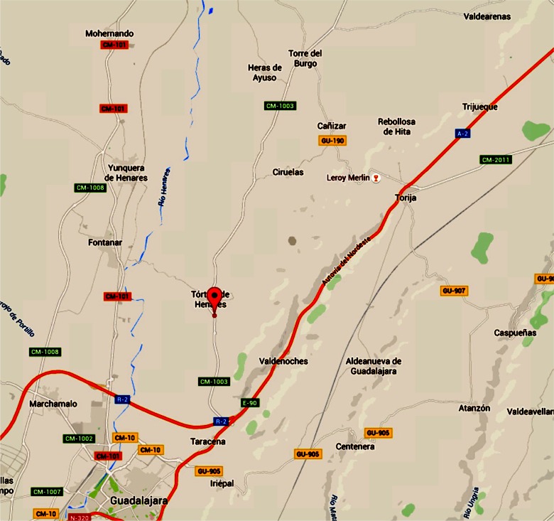 Ese aparato se fue desplazando por la vega del Henares, en direccion al pueblo cercano de Fontanar. Iba perdiendo altura y se iba ciñiendo al terreno.